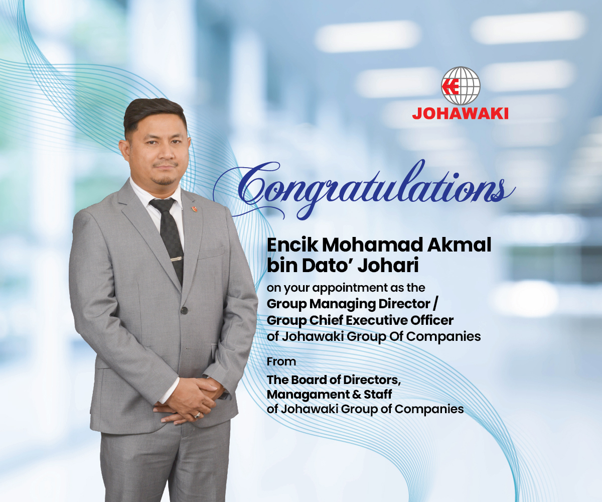 Johawaki Group of Companies extends its heartfelt congratulations to Encik Mohamad Akmal bin Dato’ Johari on his appointment as Group Managing Director / Group Chief Executive Officer.
